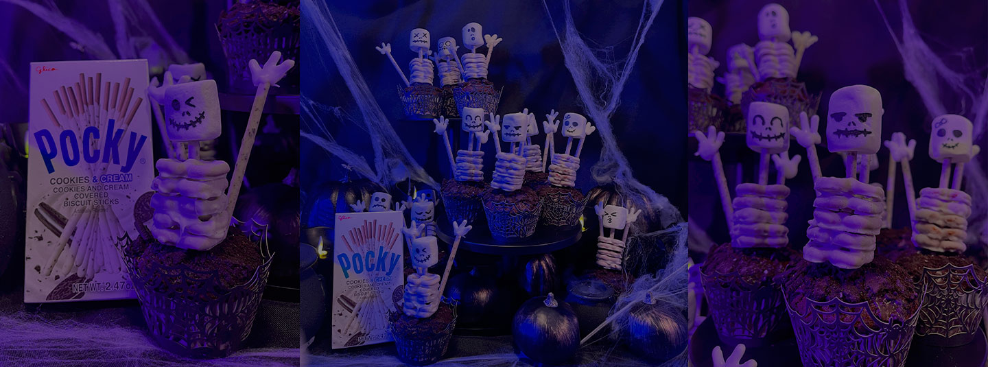 Looking for fun Halloween party recipe to make with your friends? Learn how to make this cutest dancing skeleton cupcakes with Pocky!